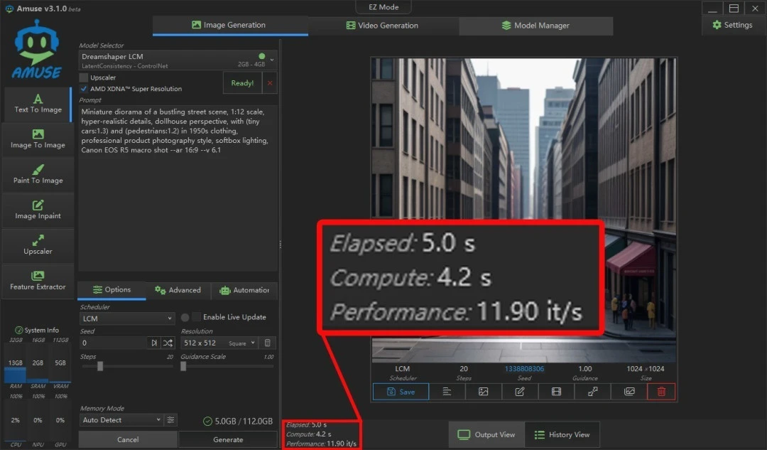 Using Amuse (AMD's collaboration with Amuse AI), I tested text-to-image generation: