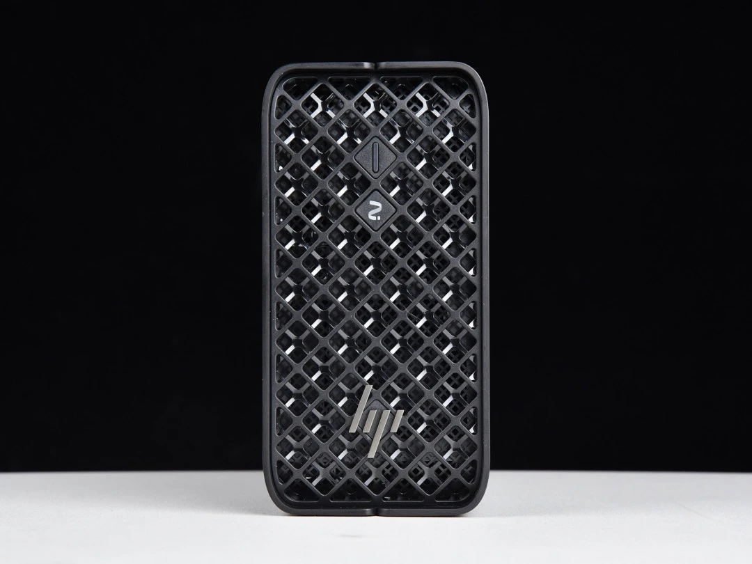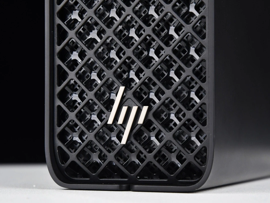 When I first unboxed the Z2 Mini G1a, the industrial aesthetic immediately impressed me. HP engineered this machine as a 2.9L solid-state mini-chassis—visually, it resembles a premium NAS rather than a workstation. The matte black exterior feels intentionally subdued for enterprise environments. The build quality is genuinely exceptional: the four corner radii are hand-polished smooth, and the front diamond-grid heatsink pattern serves dual purposes (attractive + functional airflow).