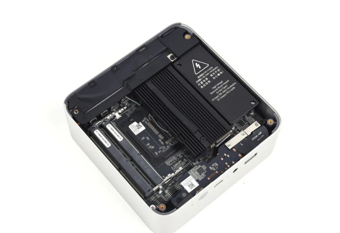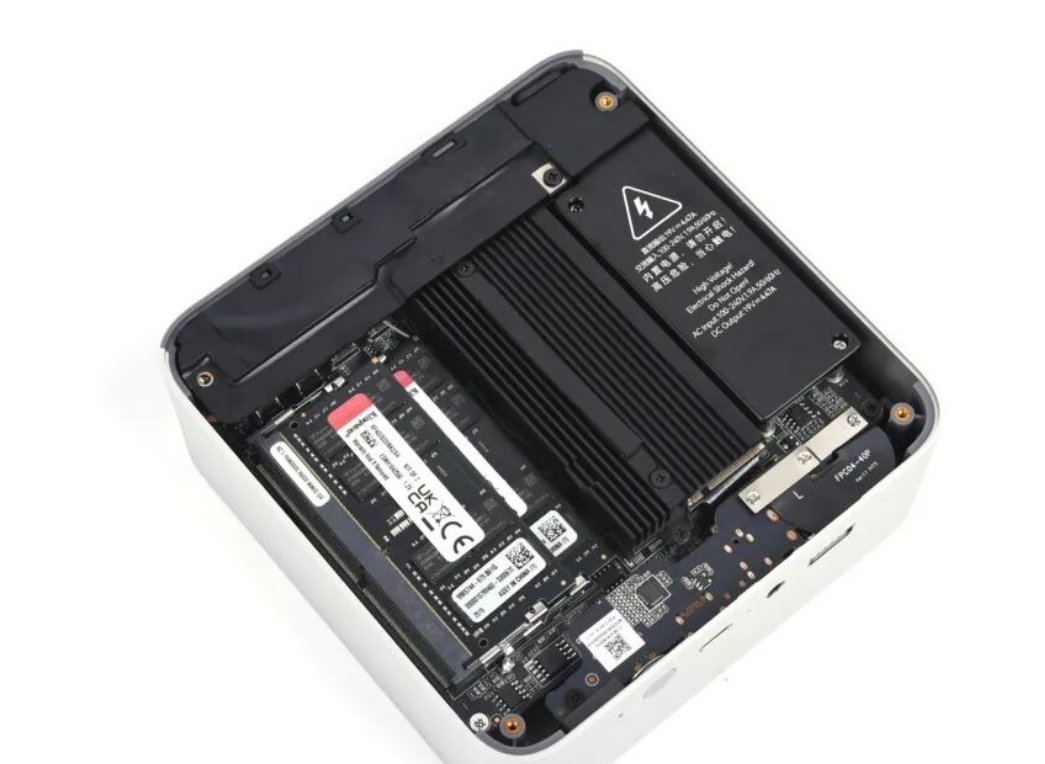 Internally, the thermocouple shows competent engineering—full aluminum core coverage, bottom-intake single-fan turbine design, and decent PCB layout. The included graphite thermal pads for SSD cooling are thoughtful, though I found them unnecessary for most workloads. Bottom-panel access is straightforward with included rubber feet and (slightly fiddly) 3mm hex screws.