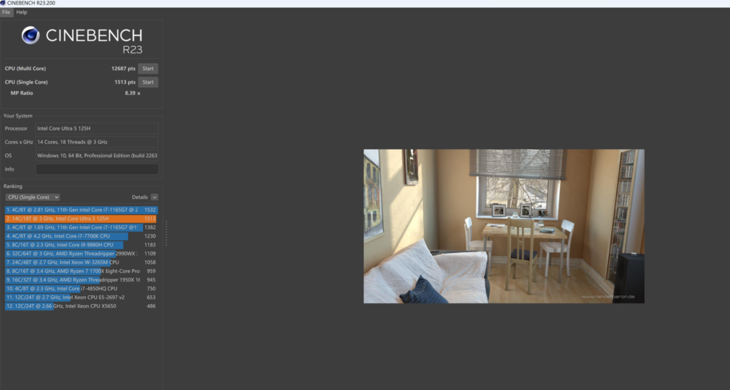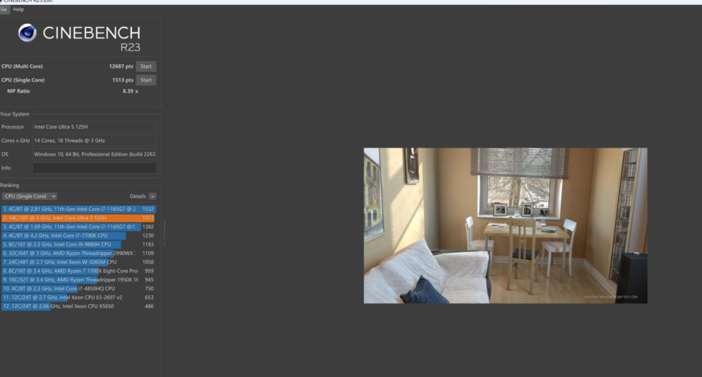 The SEi14 is powered by the Intel Core Ultra 5 125H (14 cores, 18 threads). While the single-core performance sees only modest gains over the previous generation (i5-13500H), the multi-core efficiency and the addition of the NPU (Neural Processing Unit) make a tangible difference in modern workflows.