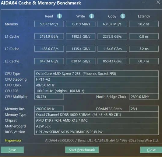 DDR5 read/write: Tested via AIDA64 (exact figures not provided in source, but typical for this config is 60+ GB/s bandwidth)