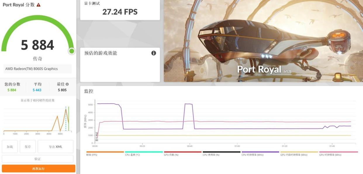 Port Royal ray-tracing: 5,884 pts (RTX 4060 achieves ~5,957 pts)