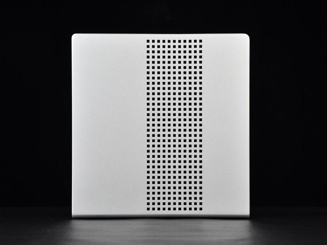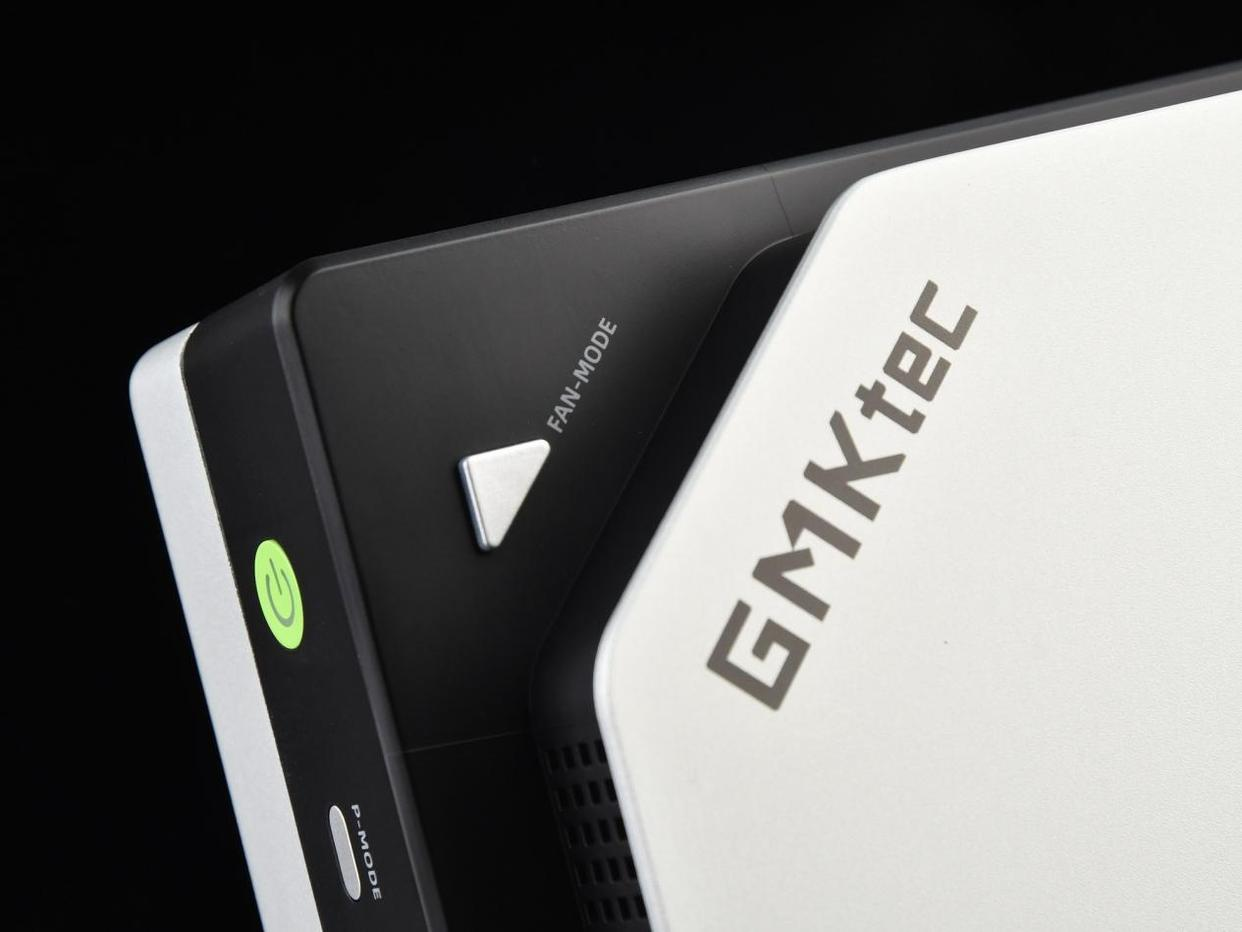 I appreciate the industrial aesthetic. The EVO-X2 uses an aluminum chassis with a "sandwich" design—silver metal top/bottom, black sides—and includes a distinctive chamfered corner with the GMKtec logo. It supports both horizontal and vertical placement, which is practical for office setups.