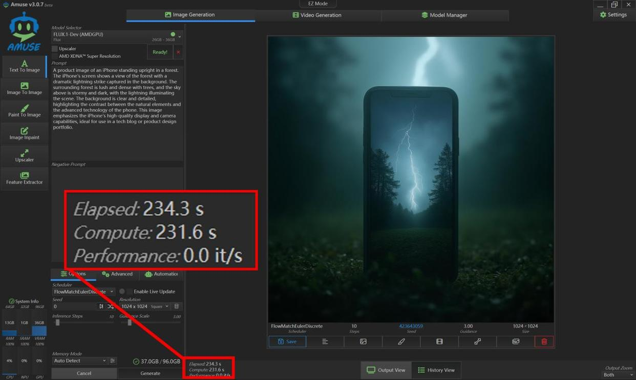 I generated a 1024×1024 image using Flux.1-Dev (state-of-the-art quality, computationally intensive):