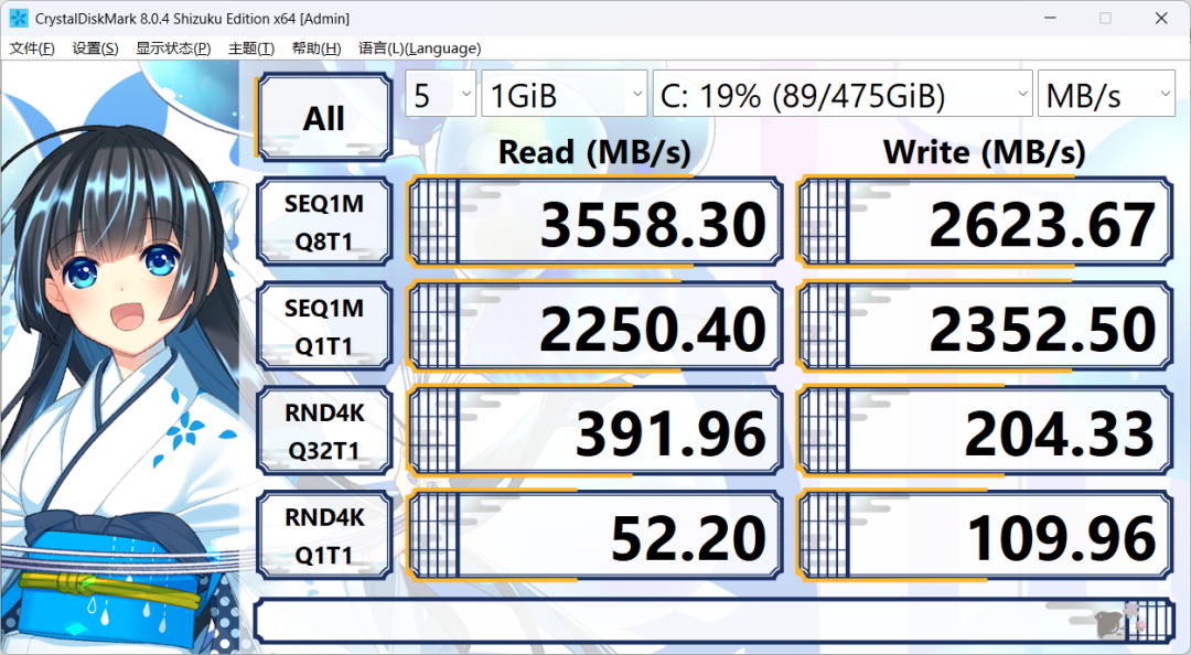 In benchmark tests using CrystalDiskMark, the stock 512GB SSD hit read speeds of 3,558 MB/s and write speeds of 2,623 MB/s. It’s snappy, responsive, and more than fast enough for daily OS operations.