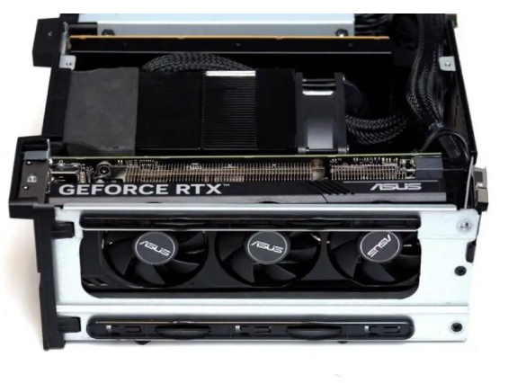 I tested discrete GPU insertion (Asus RTX 4060LP, half-height dual-slot) and external docking via Thunderbolt 5.