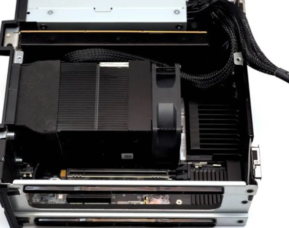 Direct PCIe Slot Performance (RTX 4060LP): The card fits with ~5mm tip protrusion beyond the front bezel—no impact on functionality. The PCIe Gen 5×16 slot allocates full Gen 4×8 to the GPU (bandwidth limitation of the E810 network card sharing the slot architecture); test results show the RTX 4060LP performs identically to standard desktop configs. Gaming/graphics benchmarks showed zero bottlenecking at PCIe 4.0×8 for this mid-range card. Practical takeaway: you can daily-drive an RTX 4060 or similar without compromise.