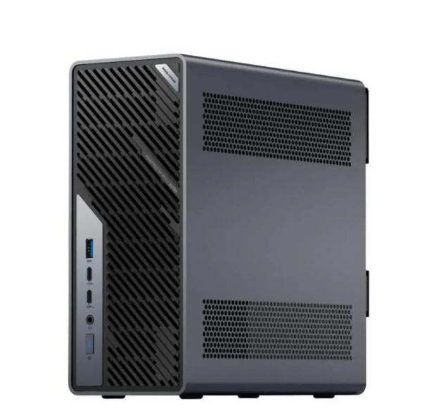I found the MS-02 Ultra refreshingly purposeful rather than flashy. The brushed aluminum chassis measures 221.5 × 97 × 225mm (4.83L)—roughly 1.9× the predecessor MS-01—yet manages a refined, almost understated aesthetic reminiscent of a Lenovo ThinkStation P3 Ultra. The angled hexagonal ventilation grilles on front, sides, and top suggest engineering intent rather than marketing. At roughly 2–3kg (exact weight not provided in your materials), it's definitely "pressure-exerting" on a desk.