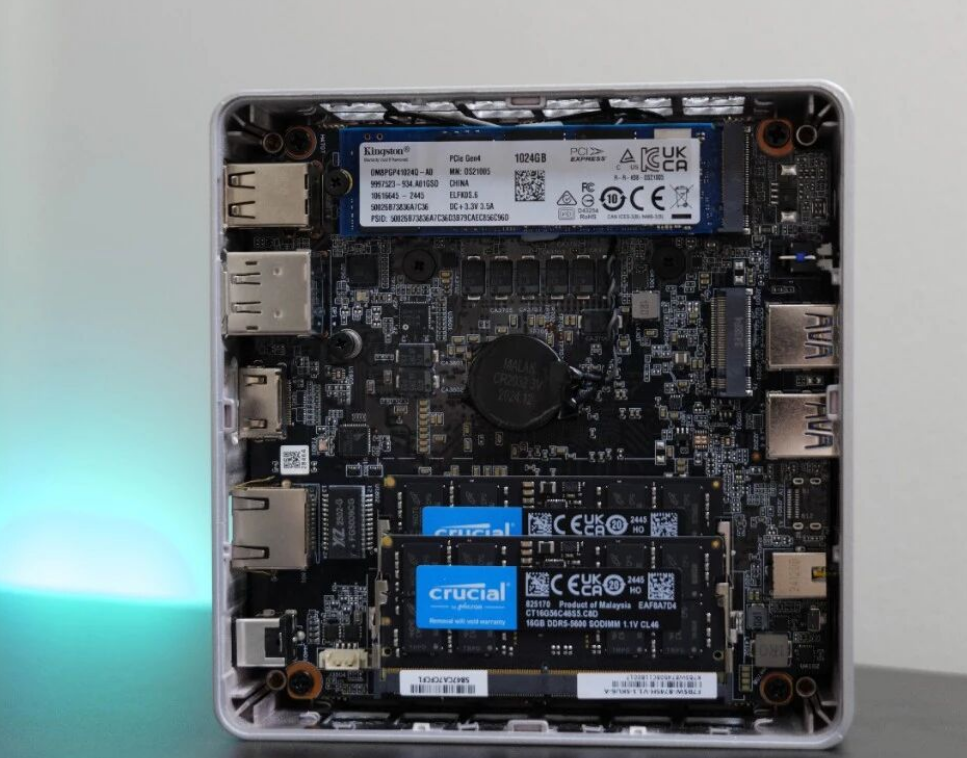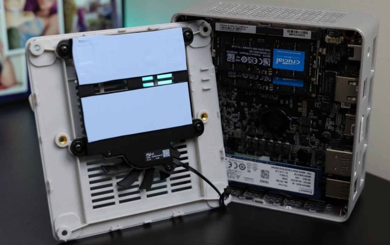 However, once inside, the layout is logical. The active cooling solution is robust, featuring a "Cold Wave" architecture with liquid metal on the CPU and a dedicated bottom fan to cool the RAM and SSDs—a critical feature often overlooked in budget mini PCs.