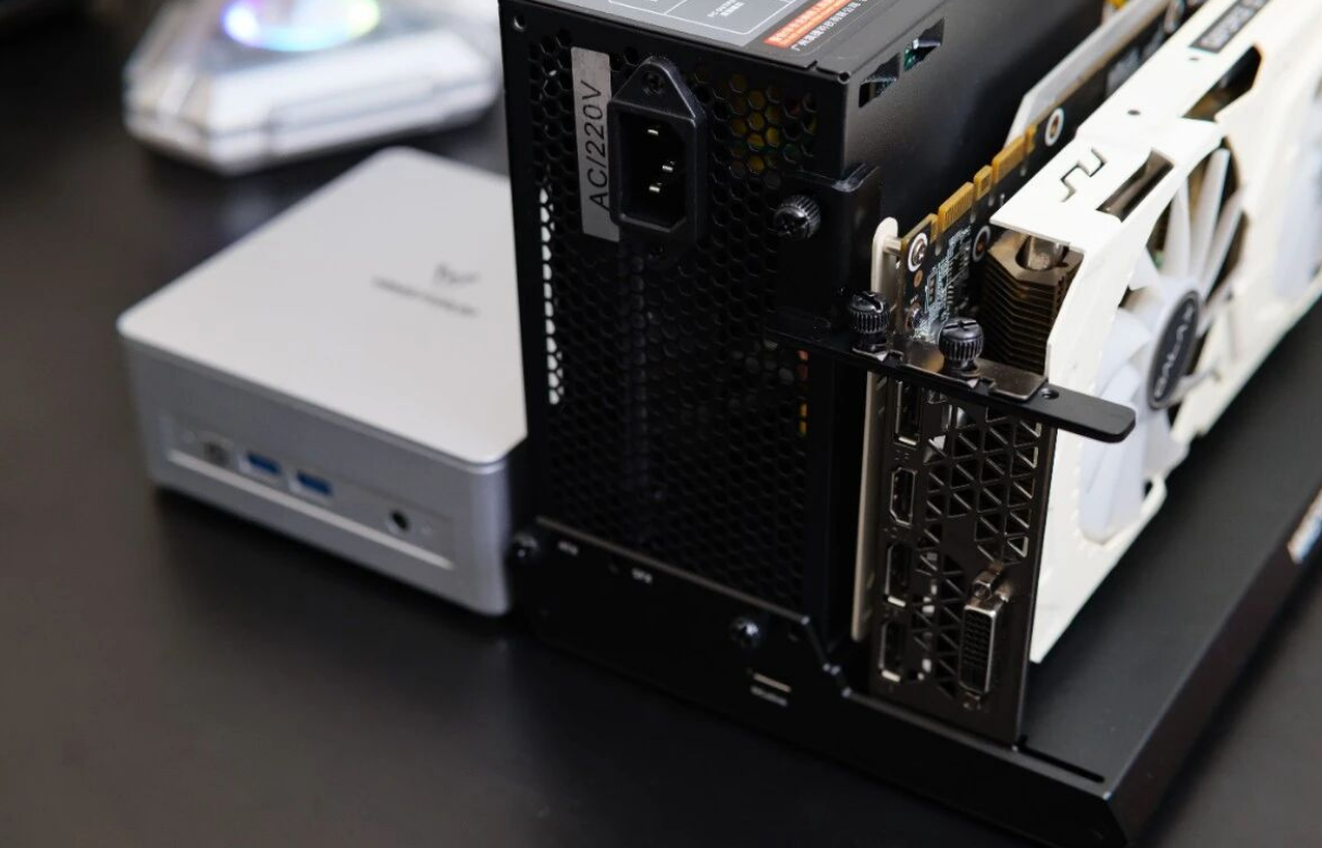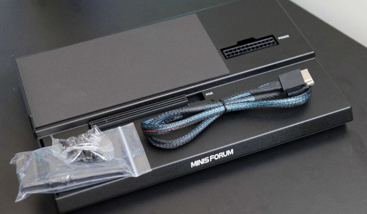 To test the true potential of this machine as a desktop replacement, we paired it with the Minisforum DEG1 eGPU Dock. The dock is open-air, supports standard ATX or SFX power supplies, and handles PCIe 4.0 x4 speeds.