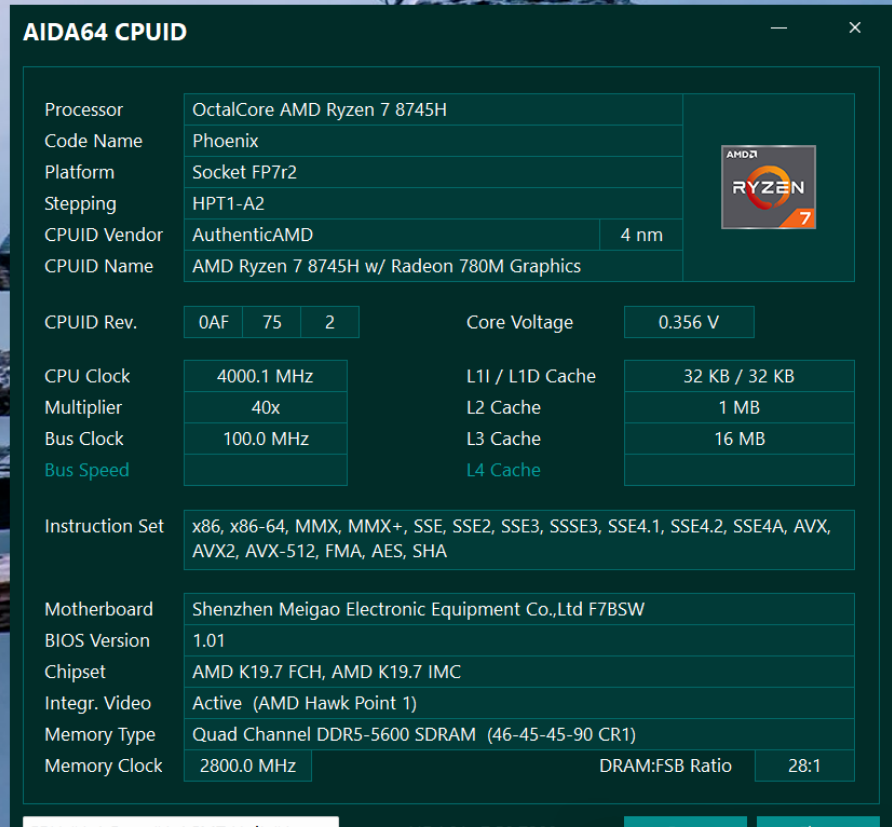 The headline feature here is the AMD Ryzen 7 8745H. It packs 8 Cores and 16 Threads based on the Zen 4 architecture, hitting boost clocks of up to 4.9 GHz.